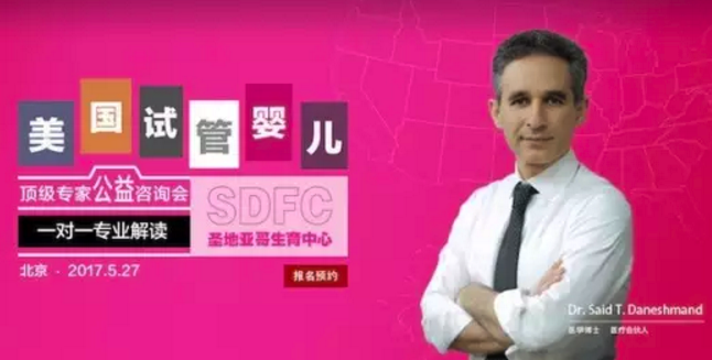 5月27日,我们将请到美国试管婴儿知名医生Daneshmand,美国圣地亚哥生育中心(SDFC)的合伙人,为不能当妈妈的女性朋友提供一场一对一公益咨询会,现场为有需要的朋友制定有效的治疗方案。