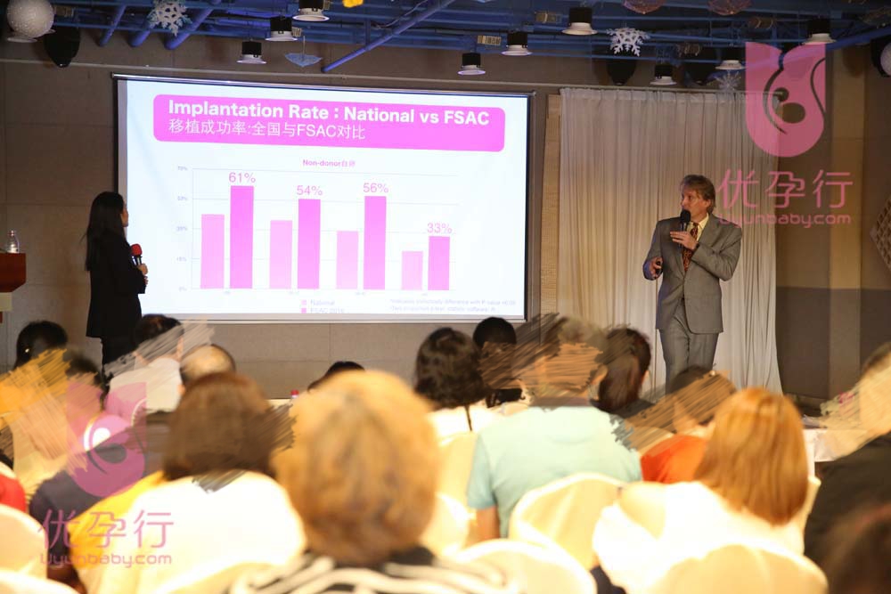 紧接着,优孕行美国试管婴儿FSAC创办人Dr.Richard Buyalos为在场来宾讲述了美国试管婴儿的相关注意事项,解释了为什么要去美国做试管婴儿、美国试管婴儿有哪些优势、以及美国试管婴儿成功几率高,其中详细介绍了FSAC试管婴儿的技术优势,FSAC各年龄段的成功几率、赴美试管婴儿流程以及赴美以后语言不通怎么解决、衣食住行谁来安排等细节。