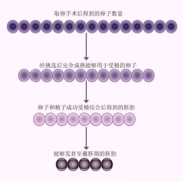 通常情况下,能够经过体外受精较后发育到品质优良的胚胎数量,约占卵子总数量的三分之一。卵子数量对于试管婴儿成功率有很大影响,卵子数量越多越好。